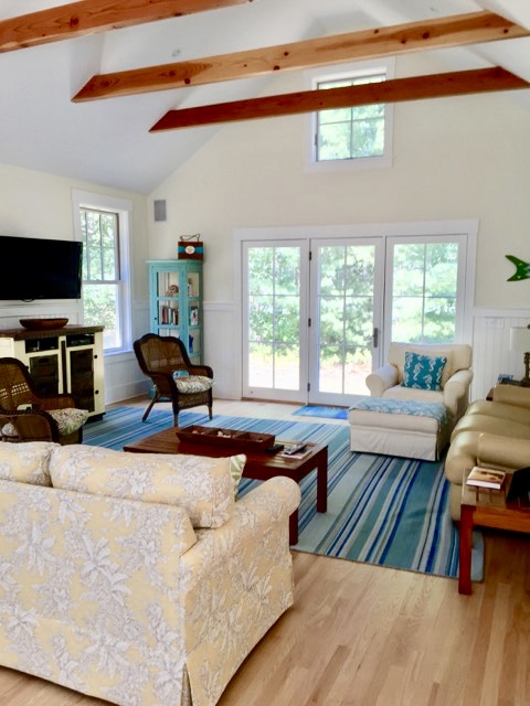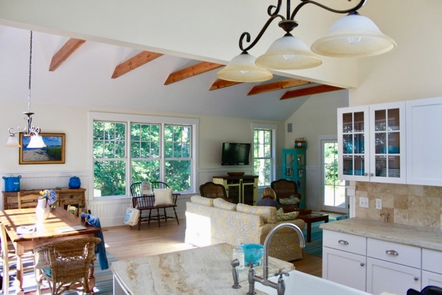 Enjoy a week in a spectacular private home in Martha’s Vineyard. Nestled in the coveted Down Harbor neighborhood of Edgartown, this gorgeous home sits on the island bike path and boasts a private beach, dock and spa pool. Quick access to Katama Bay for fishing, boating, kayaking, swimming and of course the Vineyard tradition of clamming! The two-story great room opens to a granite, stainless steel kitchen. Internet and cable as well as laundry and outdoor shower. With four bedrooms – including two private suites with 3.5 baths there is plenty of room for the entire family or a retreat for friends as this home sleeps eight. Waiting for you will be a basket collection of jewelry, music and art designed, signed and gifted by Martha’s Vineyard resident and artistic icon Kate Taylor – sister of James Taylor. Sure to inspire for a fabulous week on the island!Home is available weeks of June 11 – 18, 2021, June 18 – 25, 2021, or September 10th – 17th 2021.